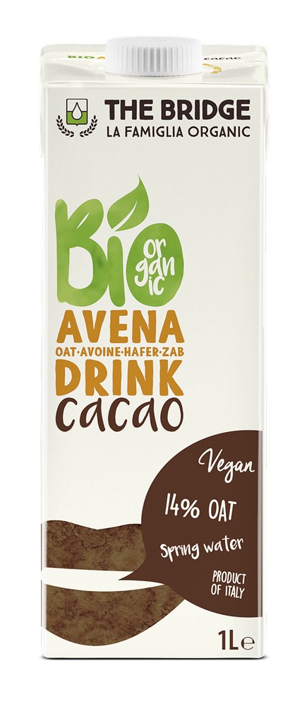 Ρόφημα βρώμης με κακάο χαμηλής περιεκτικότητας σε λιπαρά. Προϊόν βιολογικής γεωργίας, vegan, χωρίς προσθήκη ζάχαρης, με συμπυκνωμένο χυμό μήλου, χωρίς λακτόζη, χωρίς γλουτένη.