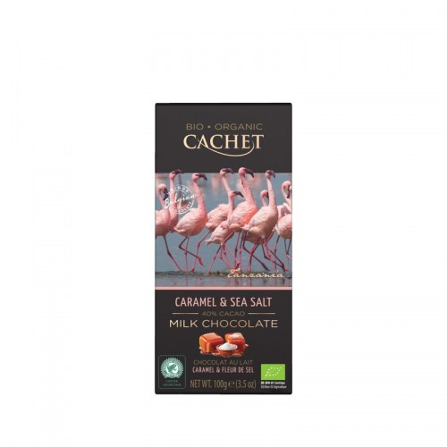 Εξαιρετικής ποιότητας βιολογική σοκολάτα γάλακτος με καραμέλα και θαλασσινό αλάτι.