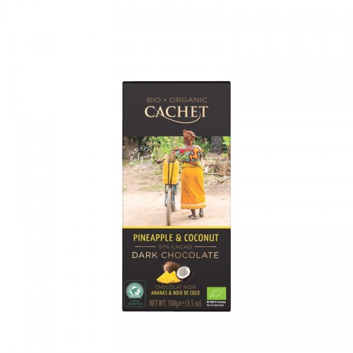 Εξαιρετικής ποιότητας βιολογική μαύρη σοκολάτα με καρύδα και ανανά