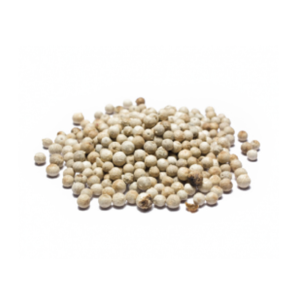 Το λευκό πιπέρι είναι οι σπόροι των ώριμων καρπών του φυτού, χωρίς τον εξωτερικό φλοιό. Έχει ξεχωριστό άρωμα και ελαφρώς πιο ήπια γεύση από το μαύρο. Ταιριάζει εξαιρετικά σε λευκές σάλτσες, πουλερικά και ψάρια.