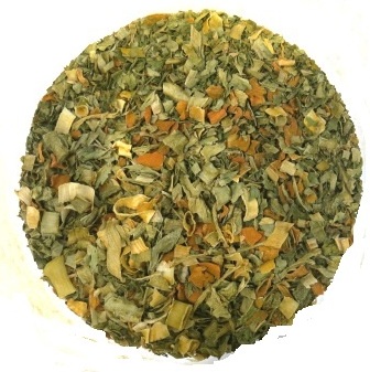 Περιέχει αποξηραμένο καρότο, σέλινο, μαϊντανό, πράσσο, σχοινόπρασσο, σπανάκι και κουρκουμά.